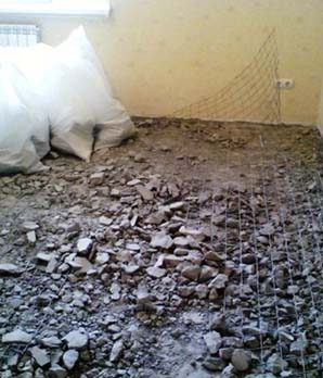 Демонтировать старое напольное покрытие. Снять все слои до самого железобетонного перекрытия.