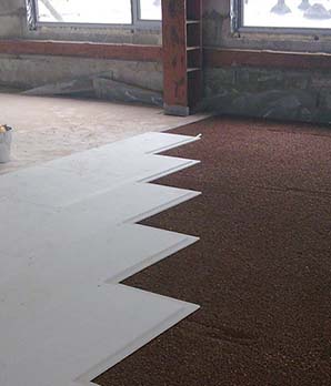 Проводим укладку сухой стяжки пола
