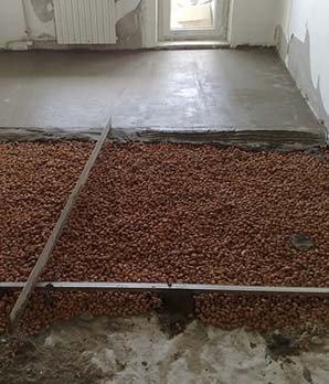- Одним из наиболее распространенных наполнителей является керамзит – нагретая до высокой температуры и вспененная глина. При работе с ним минимальная толщина слоя должна составлять 4 см.